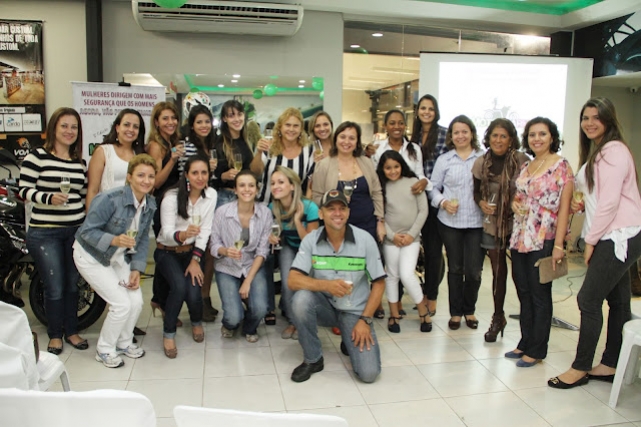 A nutricionista Débora Sena já guiou a moto do namorado, mas a experiência deixou um “gostinho de quero mais”. Foi com esta expectativa que ela participou do 2º MotoCharm, realizado pela Voar Motos, durante o mês de março, e assistiu a aula teórica e prática do instrutor Marcos Doidera, piloto conhecido pela experiência em direção defensiva de motocicletas. “Há um mito de que a motocicleta é perigosa, o que é perigoso é não saber dirigir”, afirma Doidera, que compartilhou com um grupo de mais de 30 mulheres a experiência como piloto durante o evento realizado na loja revendedora oficial da Kawasaki, em Goiânia (GO).